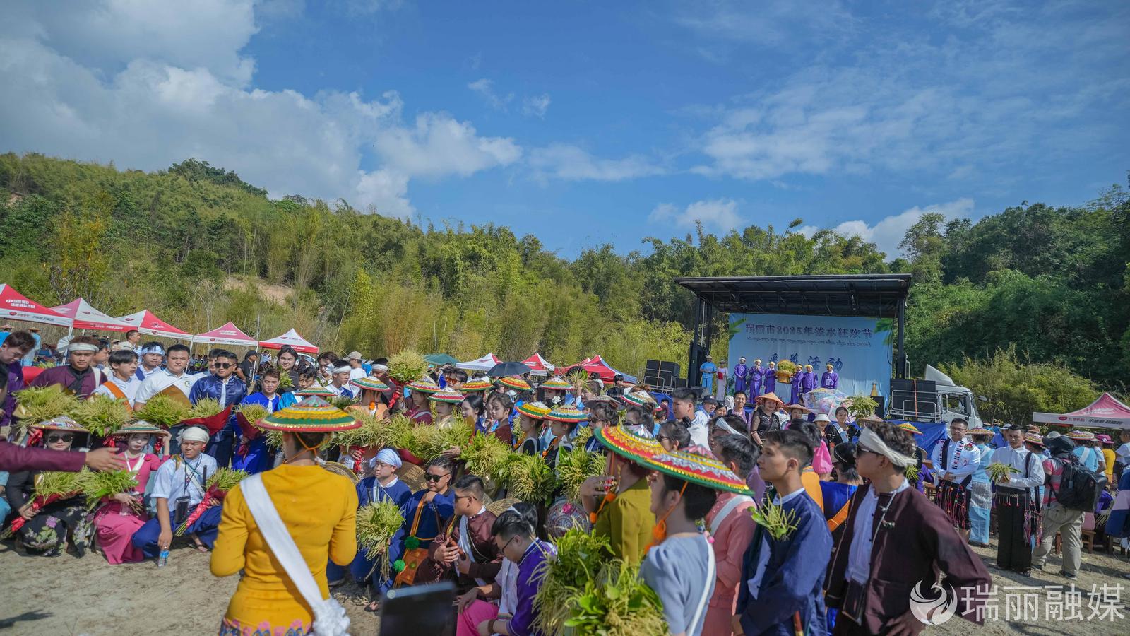 4月12日,瑞丽市2025年傣族、德昂族泼水狂欢节采花活动在勐秀乡南京里刀坝欢乐开场。