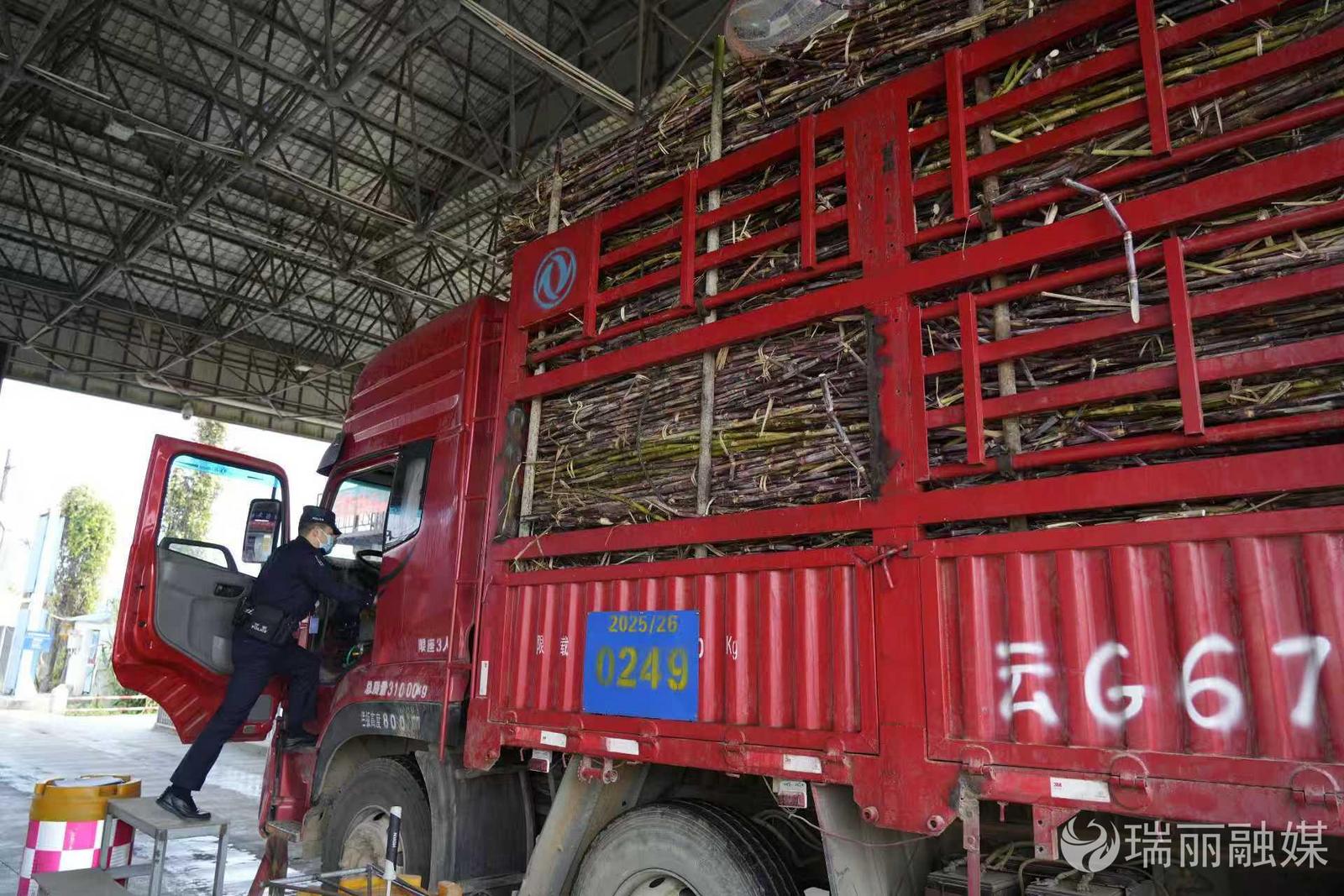 中缅边境2025—2026年度甘蔗榨季跨境运输工作启动1个月以来,瑞丽边检站雷允分站已保障超4.5万吨境外甘蔗顺畅入境,全力协助瑞丽糖厂完成境外替代返销甘蔗年度指标任务和榨季生产需求,受到地方党委政府的充分肯定,得到驻地企业和人民群众的高度赞扬!