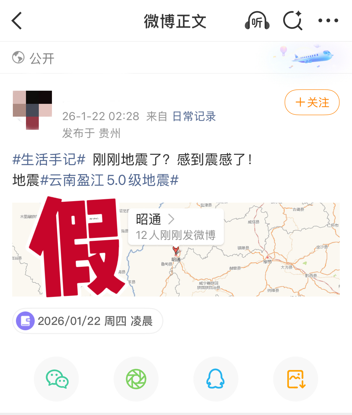 经核实,2026年1月22日,盈江县防震减灾局未监测到地震活动,中国地震台网未发布盈江县地震信息,网传“#云南盈江5.0级地震#”内容系谣言。